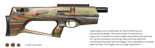 AirMaks Caiman Available in .22 and .25 calibers, Forest Laminate Stock