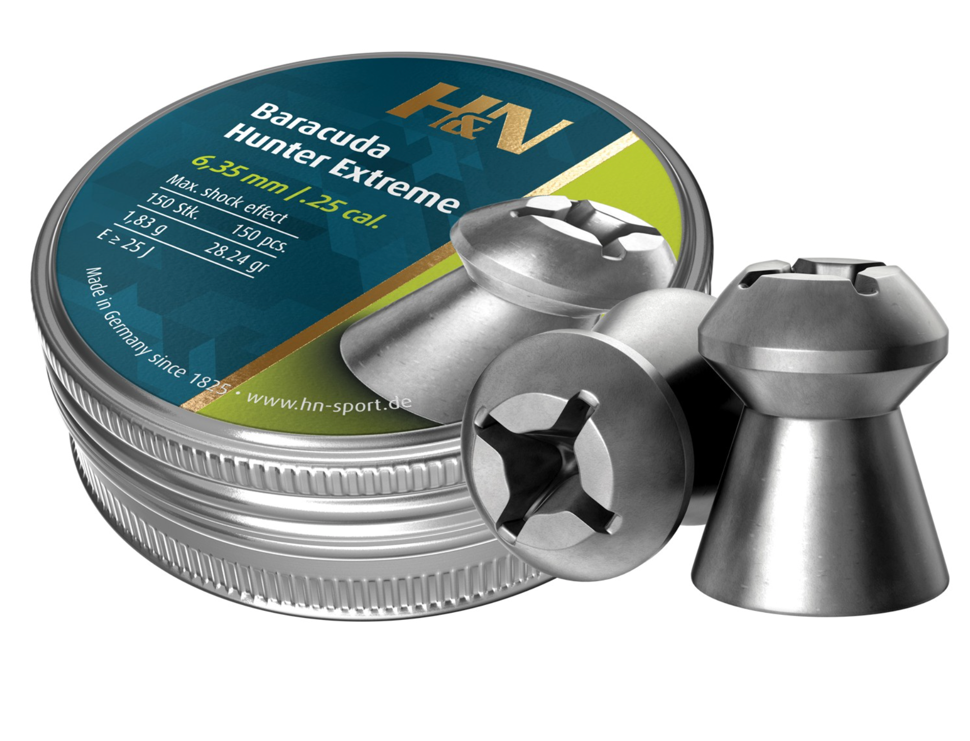 H&N Baracuda Hunter Extreme Pellets, .25 Cal, 28.24 Grains, Hollowpoint, 150ct