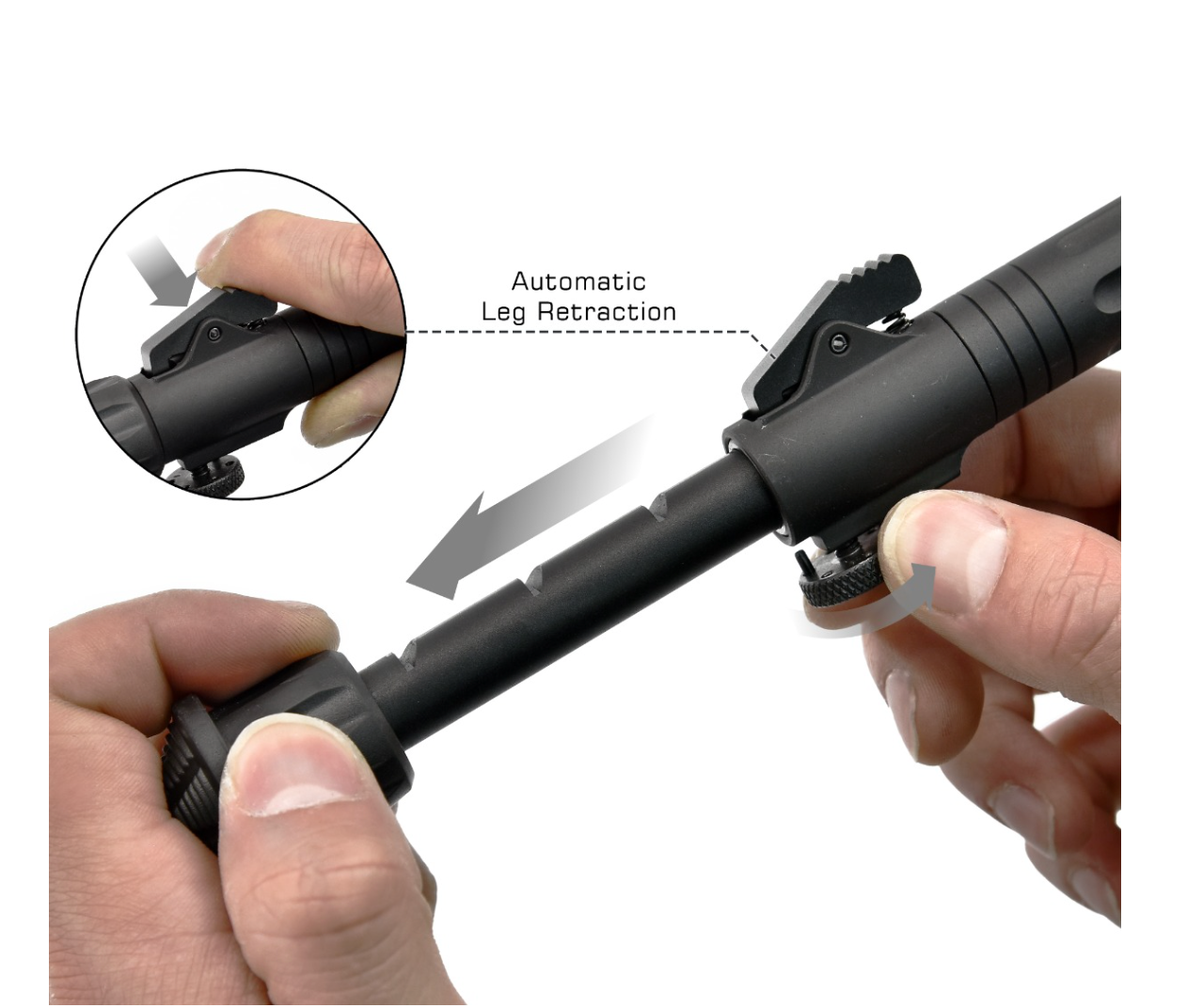 • Oversized push buttons for easier gloved manipulation when locking and unlocking bipod articulation